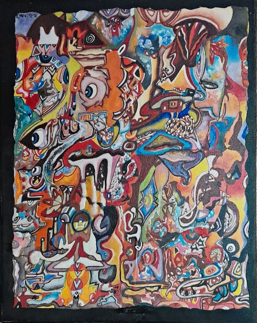 Avec des couleurs très fortes, Emmanuelle est une artiste qui aime composer, intégrer, modifier, assembler des motifs que l'on peut notamment trouver dans des livres pour les faire fusionner dans son univers. En multipliant les éléments naturels ou les personnages, elle crée des compositions pleines de profondeur et regorgeant de détails qu’il est nécessaire de prendre le temps de regarder pour mieux comprendre.